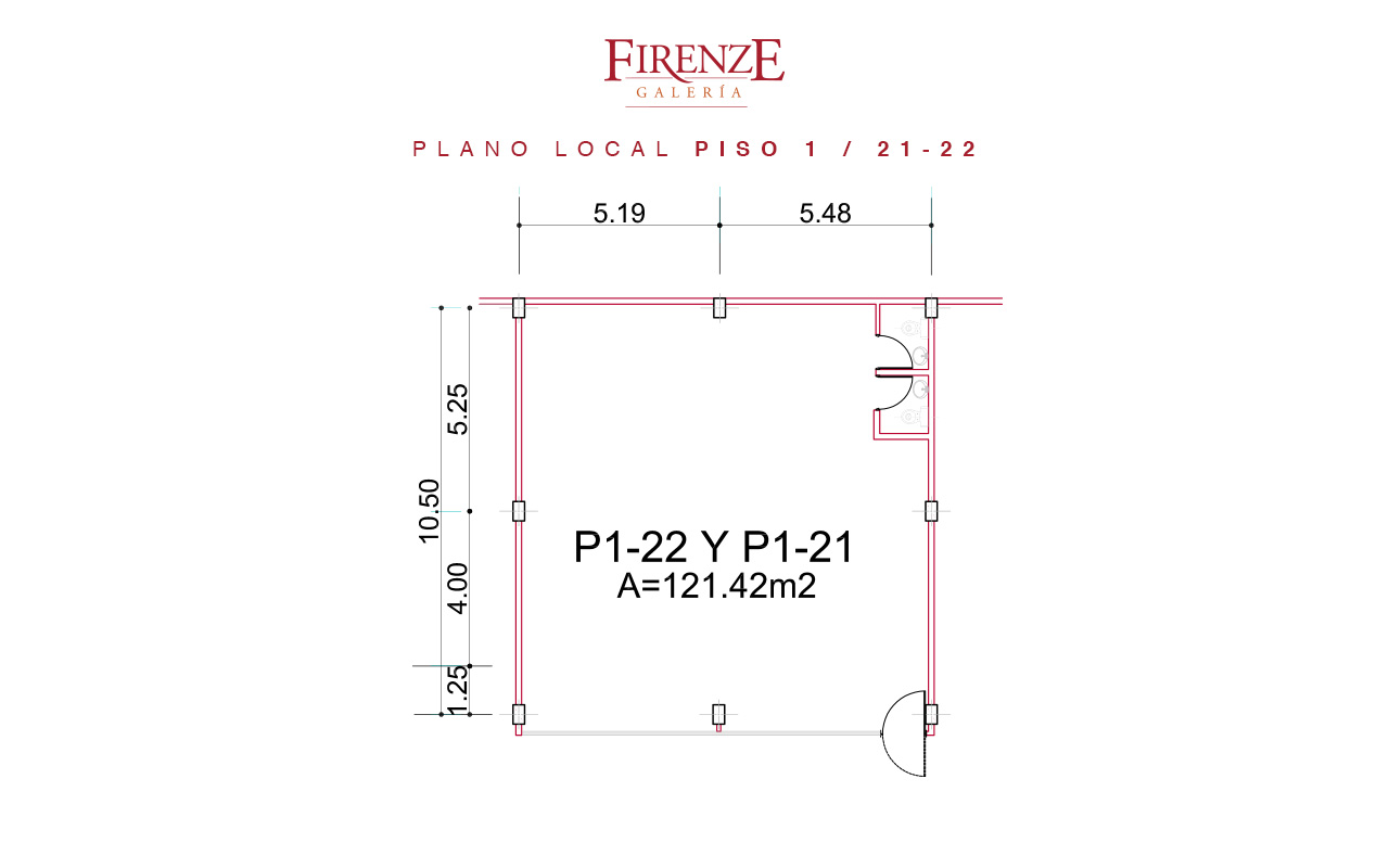 - Fachada en vidrio termo laminado con 1 puerta de 1,10 cm con manilla en acero inoxidable.